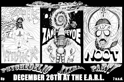December 26, 2007 at the EARL with Noot d' Noot and Chris Devoe/Zano. This was under the notion that if you get all your friends together to play a show, everyone will have a good time even though the musical styles are completely different. We basically bummed out and maybe scared the EARL crowd a little bit.